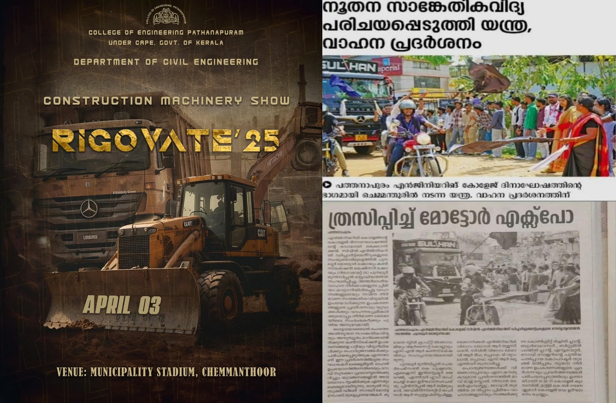 The advanced construction machinery show Rigovate'25 featuring a wide range of construction, mining and infrastructure machinery organized by the Department of Cvil Engineering at Municipality Stadium, Punalur.